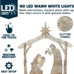 Easy to assemble with pre-wired frames, metal stakes, and zip ties included for secure setup. Perfect for both indoor and outdoor use, this elegant display featuring Joseph, Mary, and Baby Jesus brings timeless beauty and joy to your holiday season.