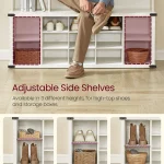 The bottom adjustable shelving unit features 4 large compartments on each side with 3 height options, and 9 smaller compartments in the middle with removable shelves, accommodating different shoes Sturdy and Durable