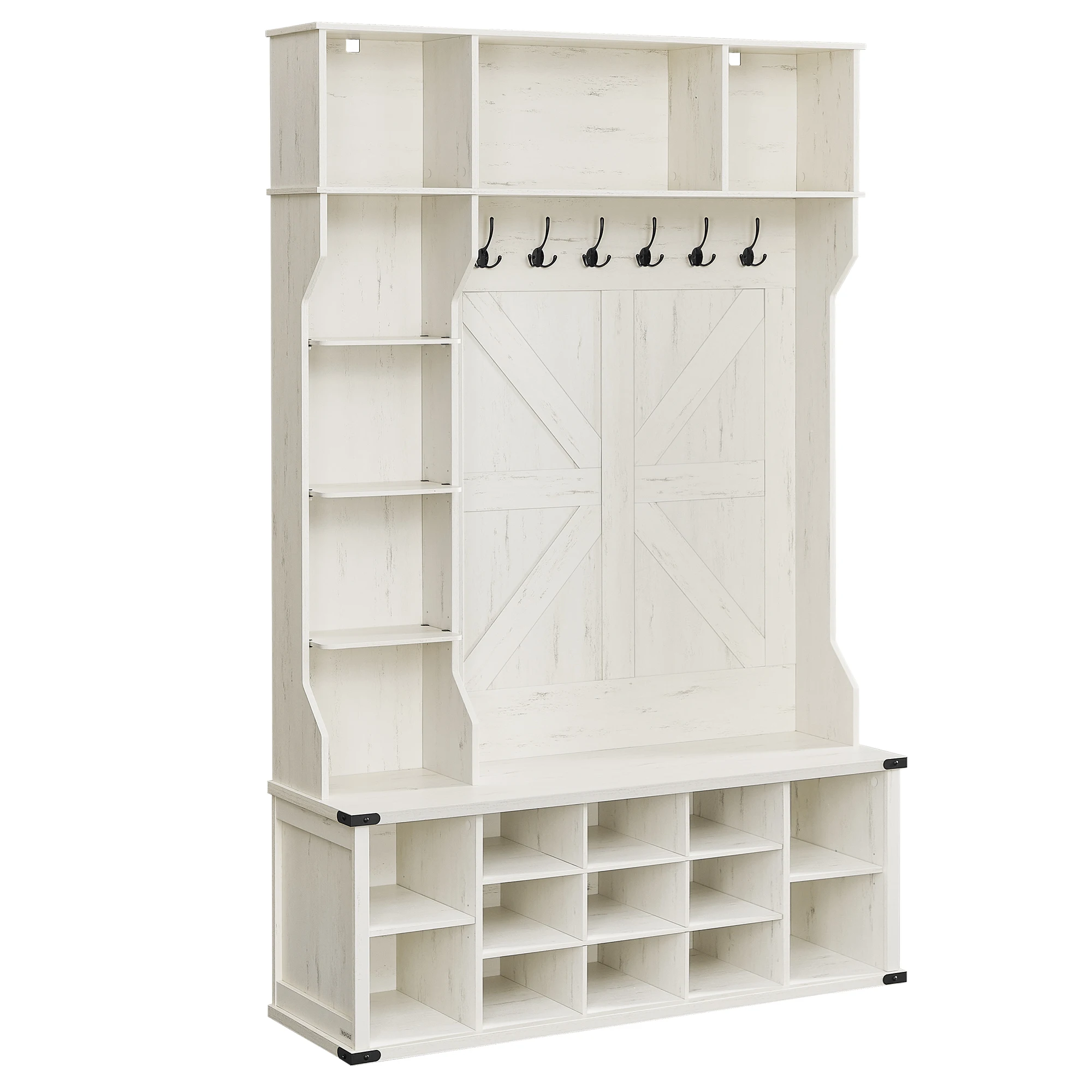 Hall Tree with Bench and Shoe Storage, Coat Rack with Shoe Bench Great As Entryway Furniture, 20 Open Compartments, 6 Tri-Hooks