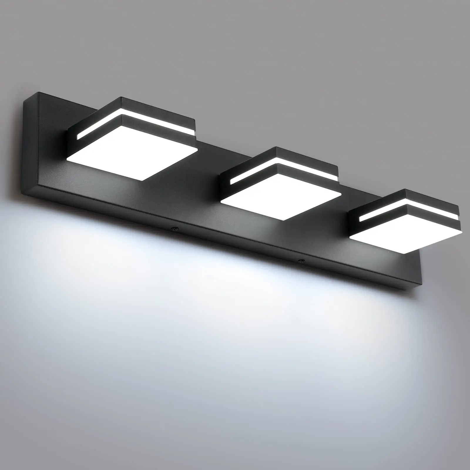 Metal Black Frame with advanced electroplate craft and sealing technology, dust-proof, fog-proof, anti-corrosion and moisture-proof, suitable for humid environment. Our Vanity light comes with 3 color temperature: warm white, cool white, and neutral.