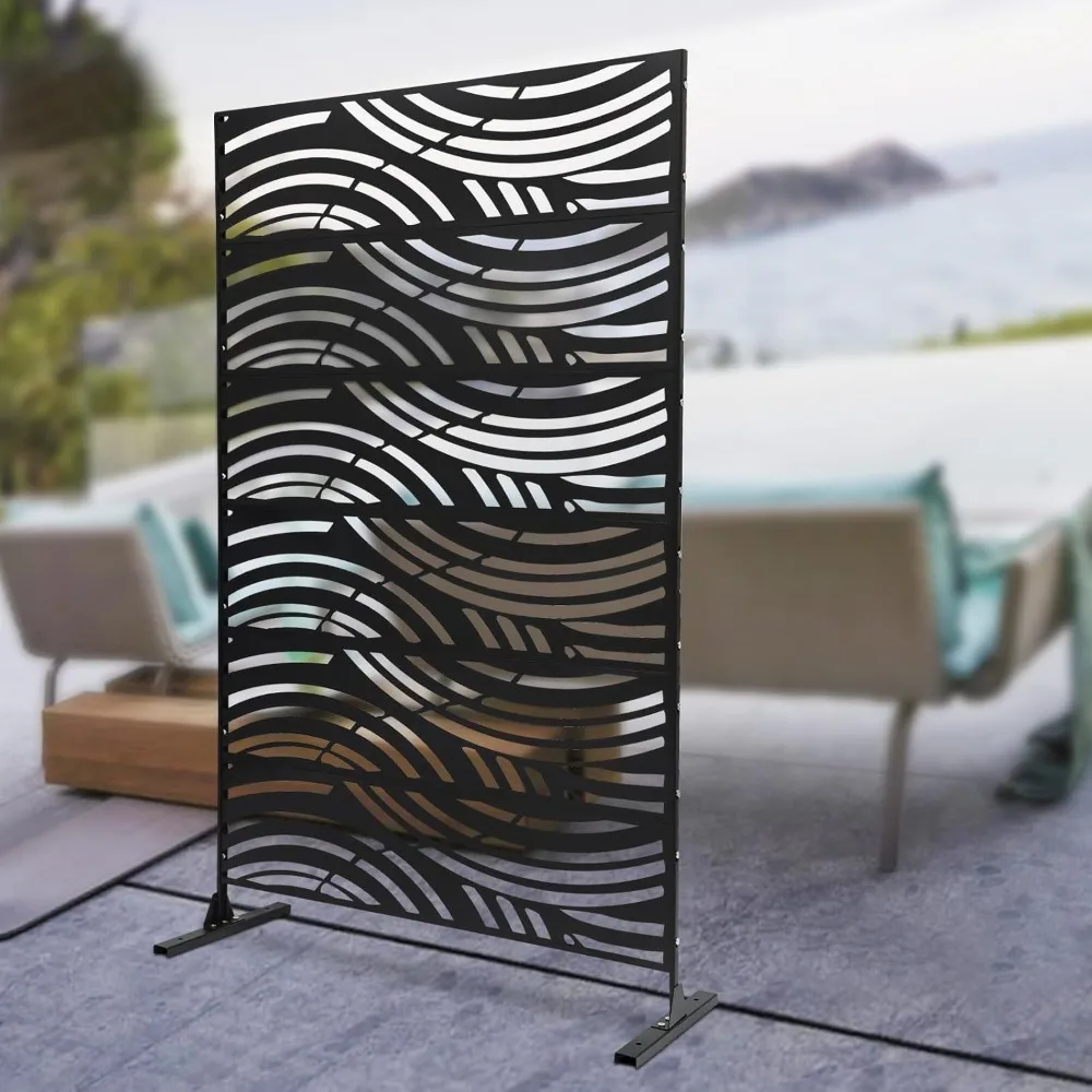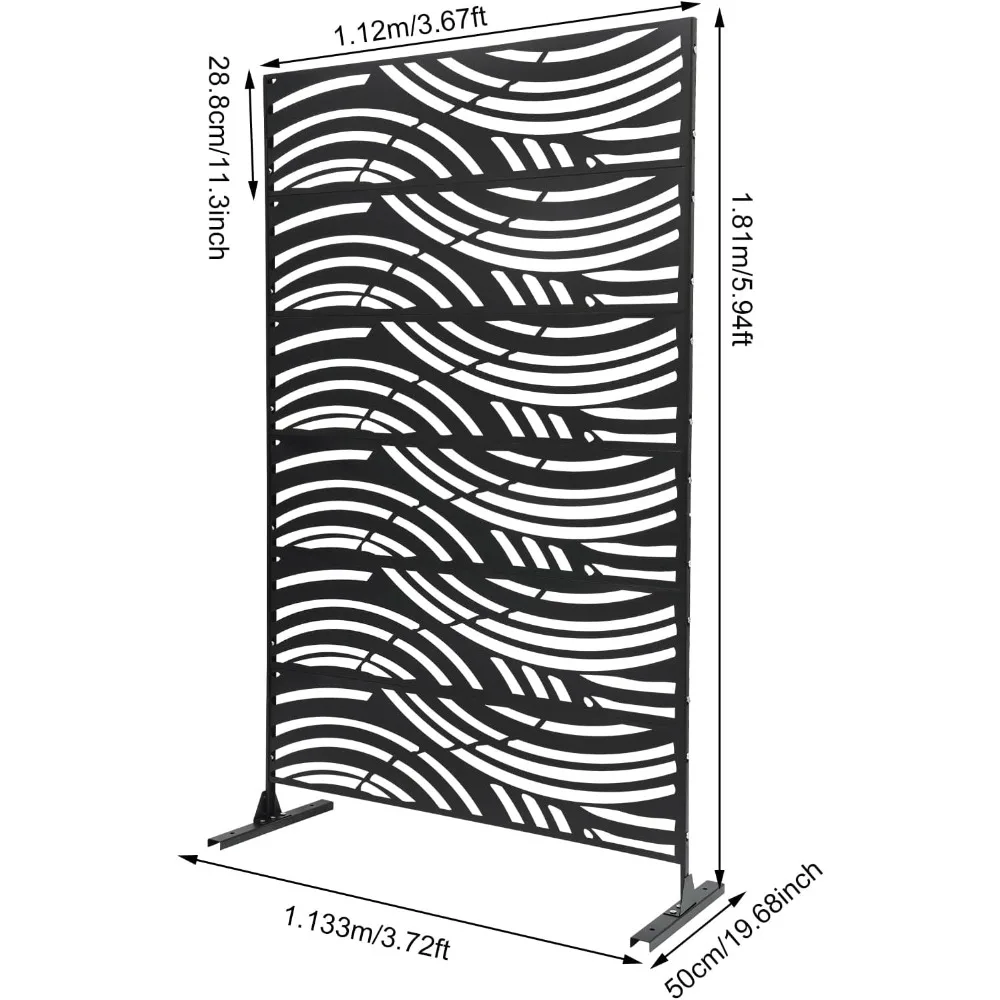 Outdoor Metal Privacy Screen Fence Freestanding Privacy Panels Decorative Divider for Porch Balcony Lawn Garden (Black)