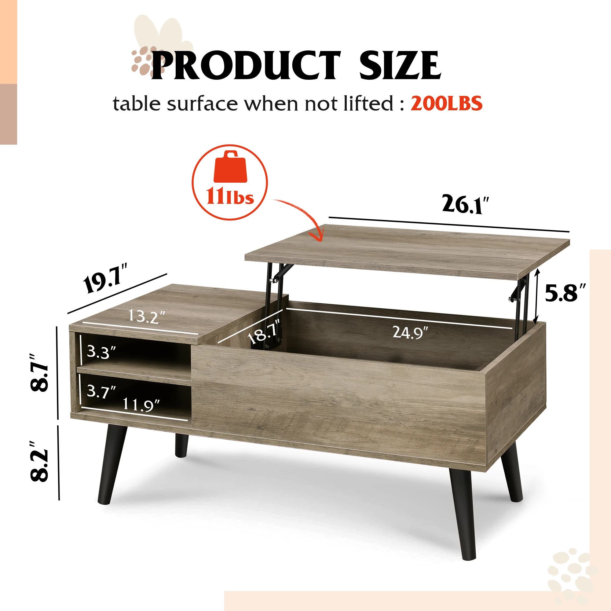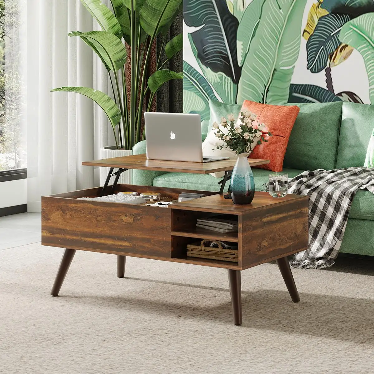 Wood Lift Top Coffee Table Hidden Compartment Adjustable Shelf Lift Tabletop for Living Room Office Home Small Space