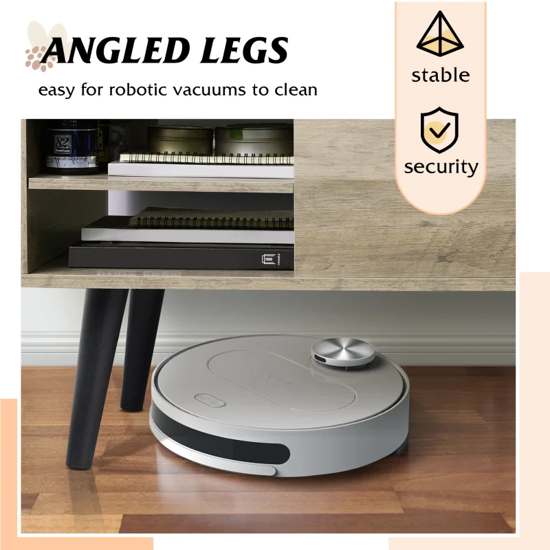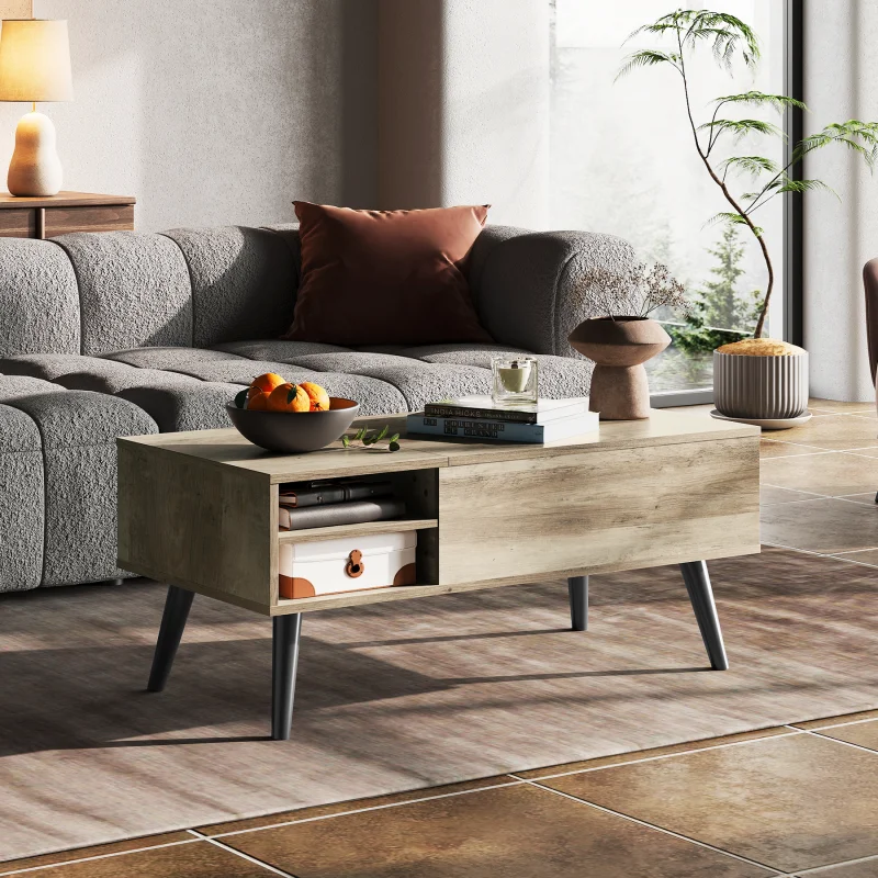 Hidden Storage keep your everyday essentials organized and dust-free with a spacious compartment under the table for laptops, remotes, and more. Stylish Modern Design featuring a rustic wood grain top and mid-century modern design, that seamlessly enhances any room décor.